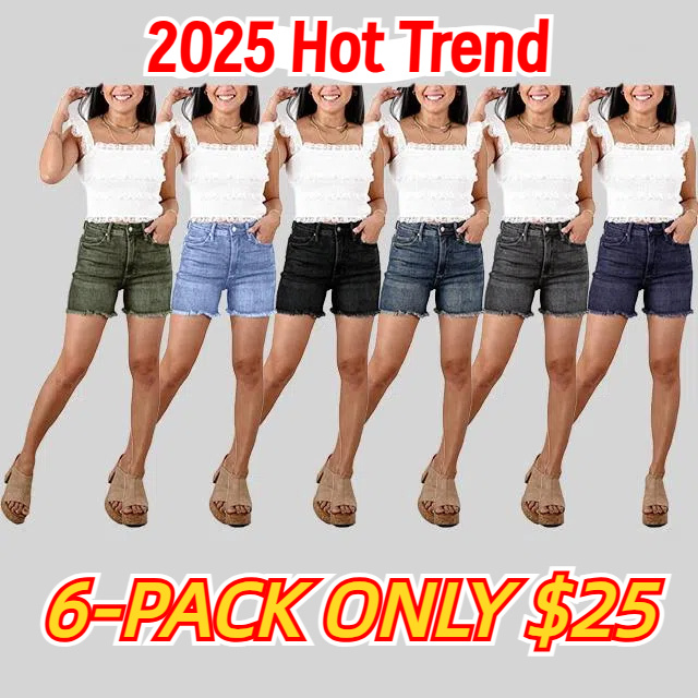 🔥2025 Hot Trend🔥Dark Wash Tummy Control Fray Hem Shorts with Shield Back Pockets