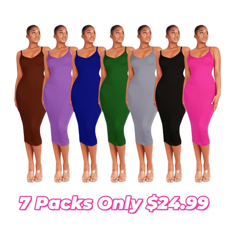 Seamless Spaghetti Strap V Neck Maxi Dress with Built-in Bodycon