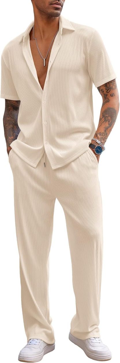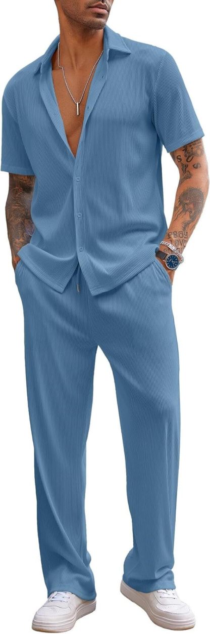 Easy To Match -- Men's 2-piece casual shirts and pants sets can pair of sneakers, canvas shoes and sandals to create stylish styles.Or wear a casual shirt alone with slacks, chinos and jeans.