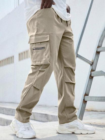 Closure Type:Drawstring Waist Details:Drawstring, Pocket, Zipper Type:Cargo Pants Fit Type:Loose Material:Woven Fabric Composition:100% Polyester Care Instructions:Machine wash or professional dry clean