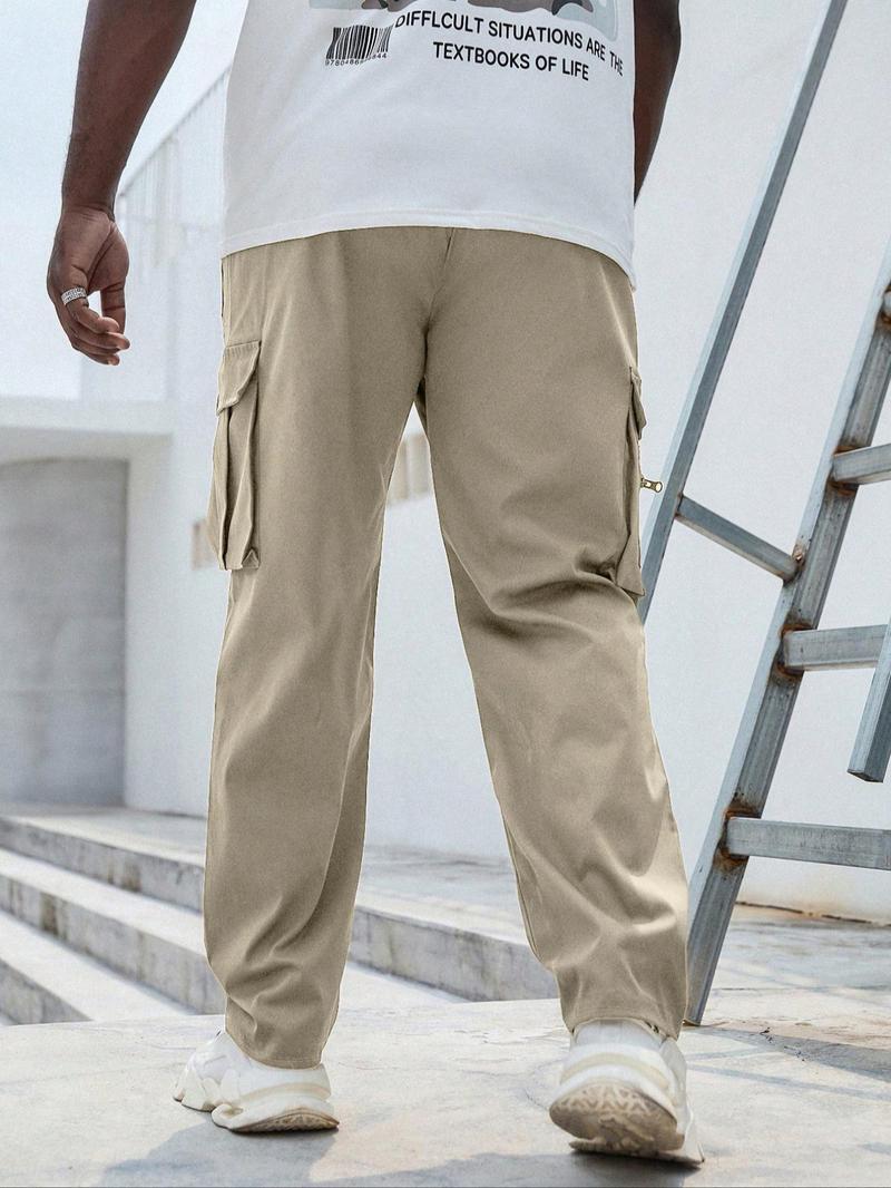 Men's Plus Size Plain Drawstring Waist Cargo Pants