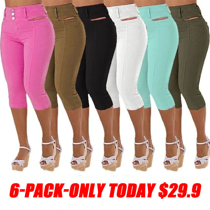 Solid Cut Out Waist Skinny High Waist Capri Jeans