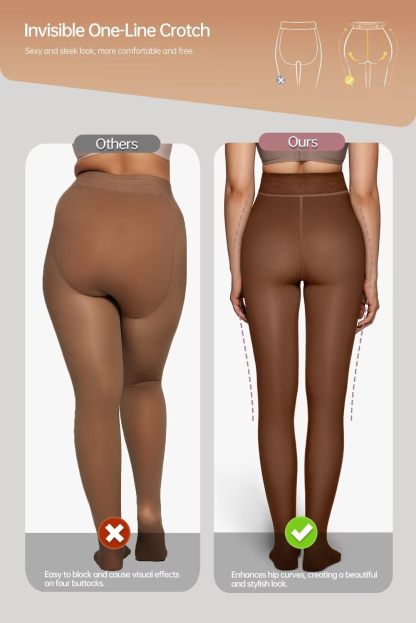 【Unique Invisible Crotch Stitching Line】These fleece lined tights for women adopt an invisible single line crotch design. Currently, the thermal tights available on the market are all designed with a U shape for the buttocks, which can result in a visual effect on all four buttocks. However, our tights look gorgeous and avoid annoying hip lines while highlighting hip curves.