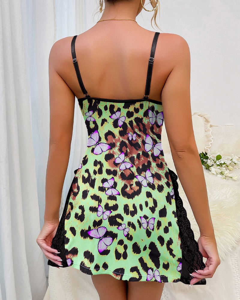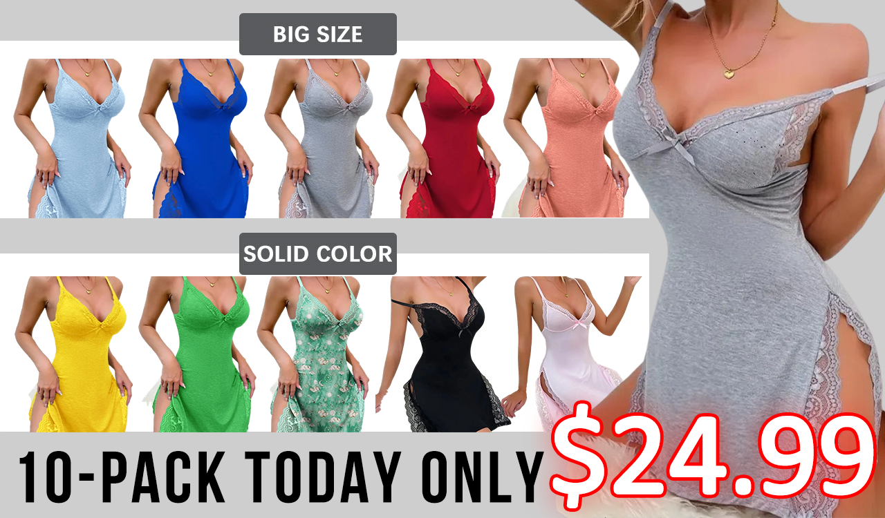 💝Last Day Promotion⚡Lace Trim Slit Bowknot Decor Sleep Dress Lingerie Party Sleeveless Low Cut Breathable