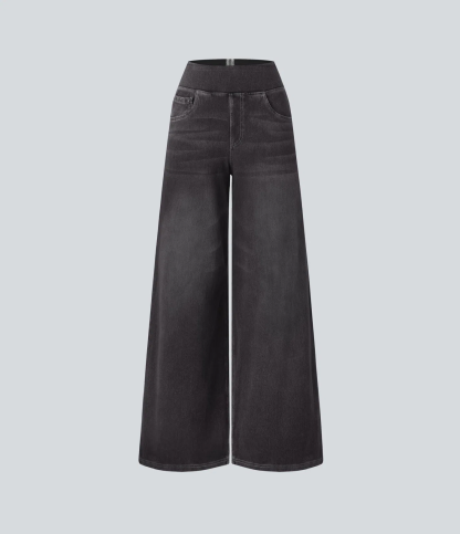 Designed with a high-rise waist and tailored proportions, these pull-on jeans provide gentle tummy support for a sleek, confident look. The stretchy fabric ensures a perfect fit for all body types, while the pull-on design makes them easy to wear, offering both elegance and practicality.